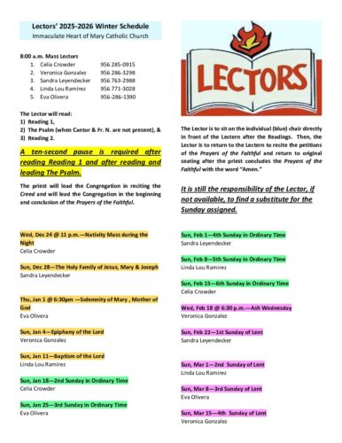 Lectors’ Winter 2025-2026 Schedule